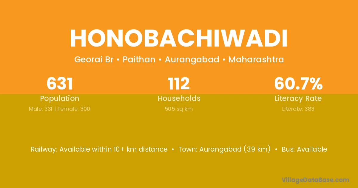 Aurangabad (39 km) is the nearest town to Honobachiwadi village for major economic activities and is located approximately 39 km away.