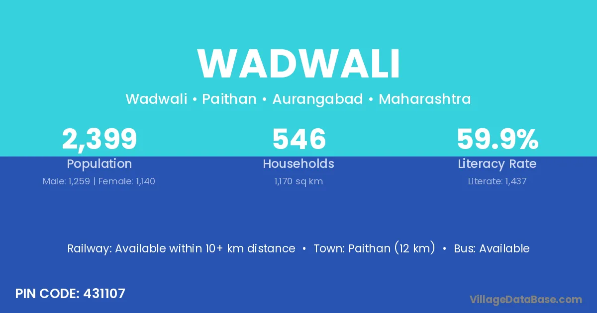 Paithan (12 km) is the nearest town to Wadwali village for major economic activities and is located approximately 12 km away.