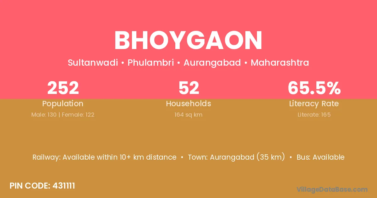 Bhoygaon village has a total population of 252 people, of which 130 are males and 122 are females.