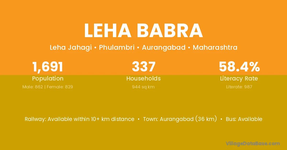 Aurangabad (36 km) is the nearest town to Leha Babra village for major economic activities and is located approximately 36 km away.