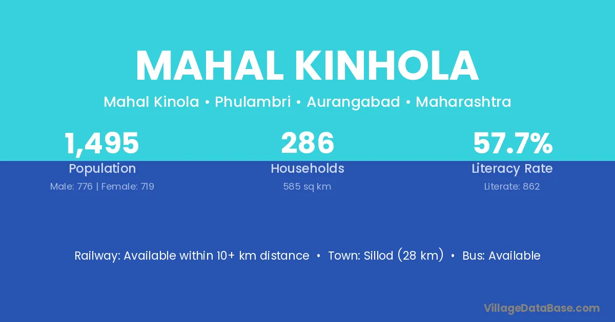 Sillod (28 km) is the nearest town to Mahal Kinhola village for major economic activities and is located approximately 28 km away.