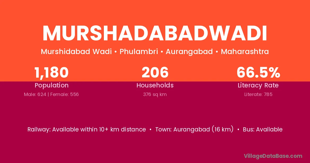 Aurangabad (16 km) is the nearest town to Murshadabadwadi village for major economic activities and is located approximately 16 km away.