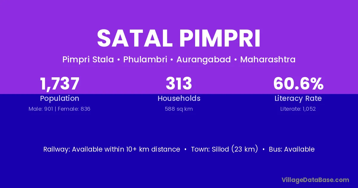 Sillod (23 km) is the nearest town to Satal Pimpri village for major economic activities and is located approximately 23 km away.