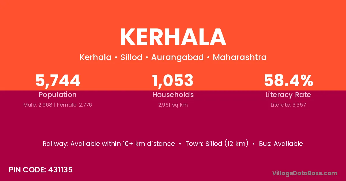 Sillod (12 km) is the nearest town to Kerhala village for major economic activities and is located approximately 12 km away.