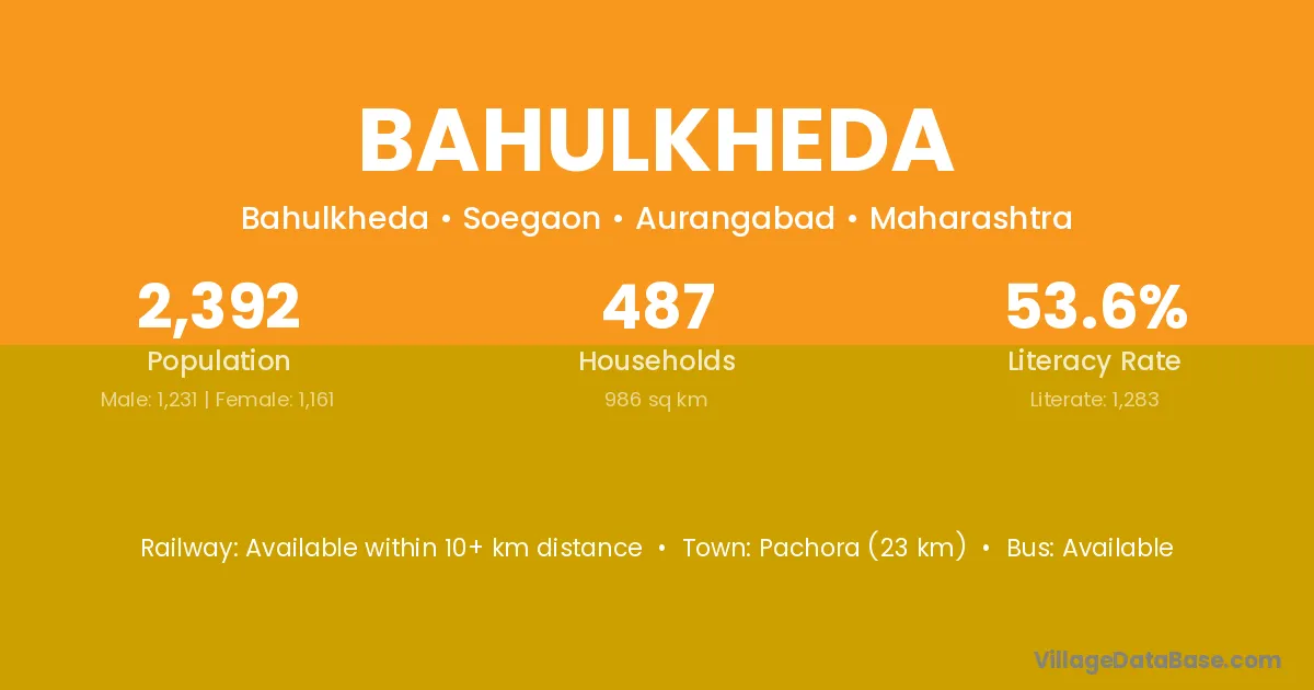 Pachora (23 km) is the nearest town to Bahulkheda village for major economic activities and is located approximately 23 km away.
