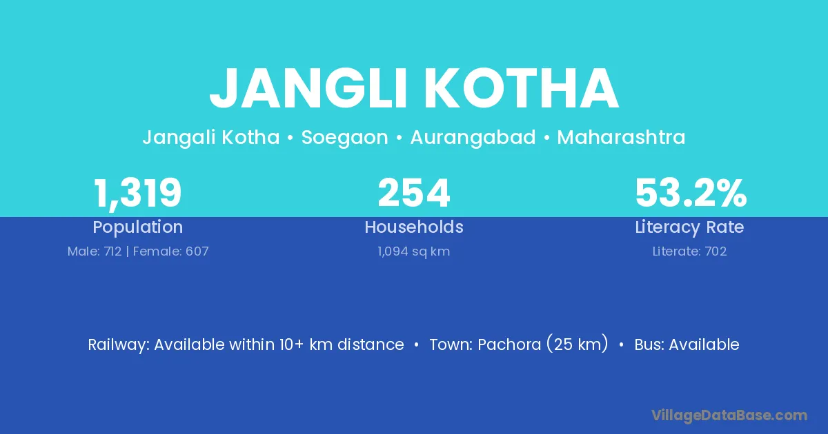Jangli Kotha village has a total population of 1,319 people, of which 712 are males and 607 are females.