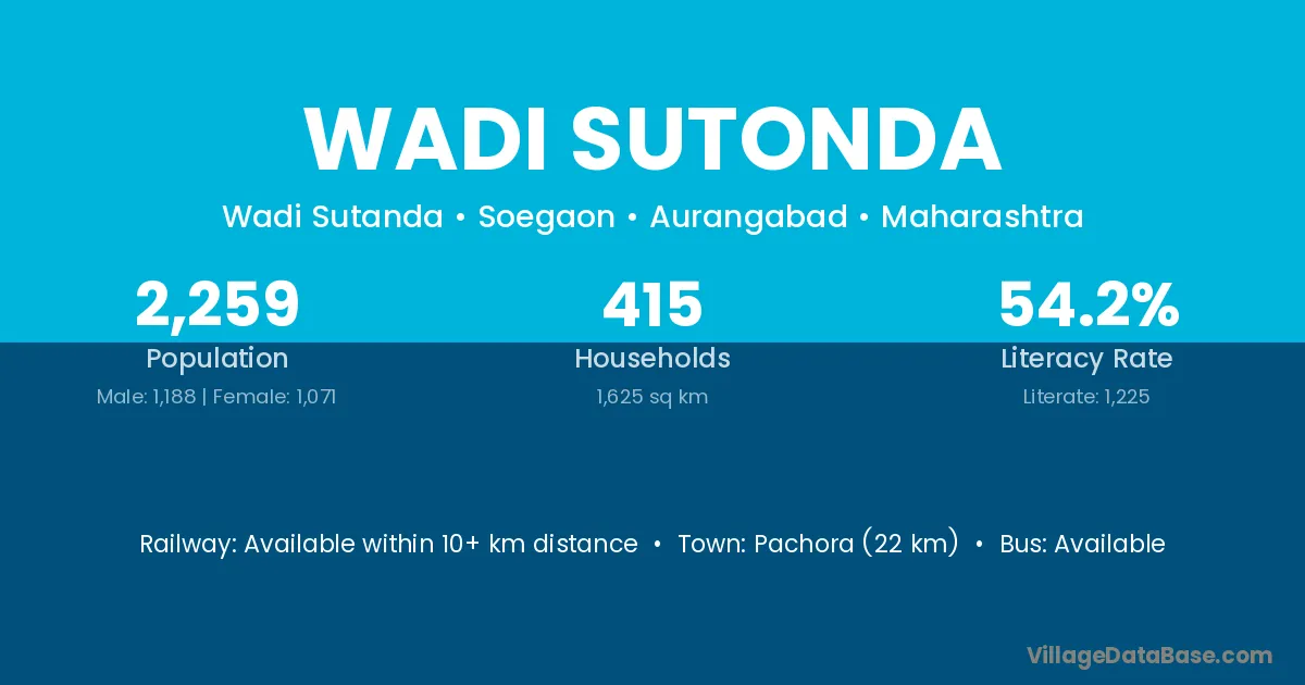 Pachora (22 km) is the nearest town to Wadi Sutonda village for major economic activities and is located approximately 22 km away.