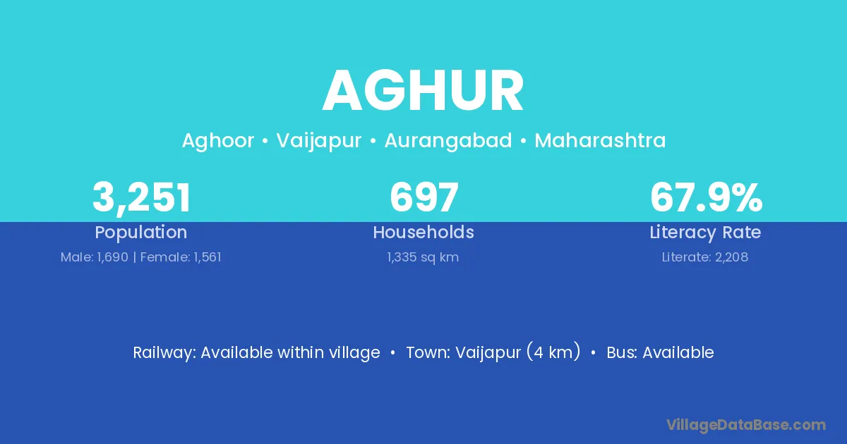 Vaijapur (4 km) is the nearest town to Aghur village for major economic activities and is located approximately 4 km away.