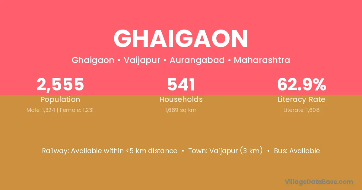 Vaijapur (3 km) is the nearest town to Ghaigaon village for major economic activities and is located approximately 3 km away.
