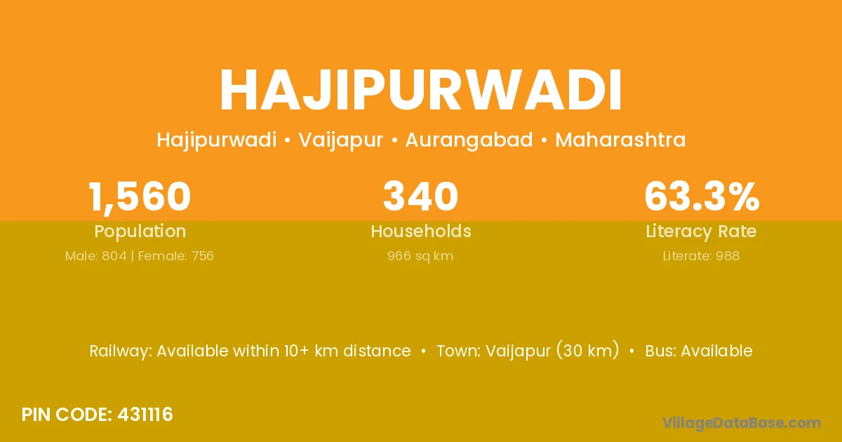 Hajipurwadi village has a total population of 1,560 people, of which 804 are males and 756 are females.