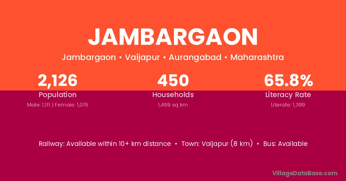 Vaijapur (8 km) is the nearest town to Jambargaon village for major economic activities and is located approximately 8 km away.