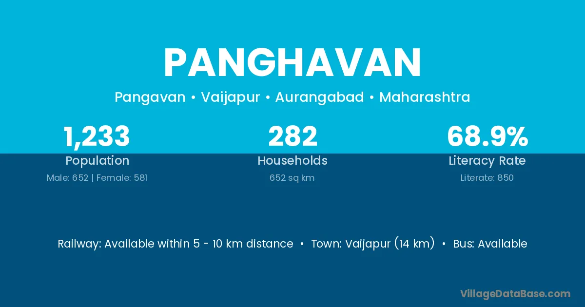 Vaijapur (14 km) is the nearest town to Panghavan village for major economic activities and is located approximately 14 km away.
