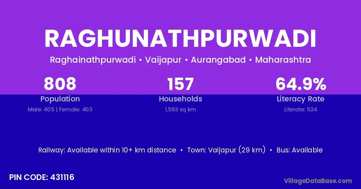 There are approximately 157 households in Raghunathpurwadi village.