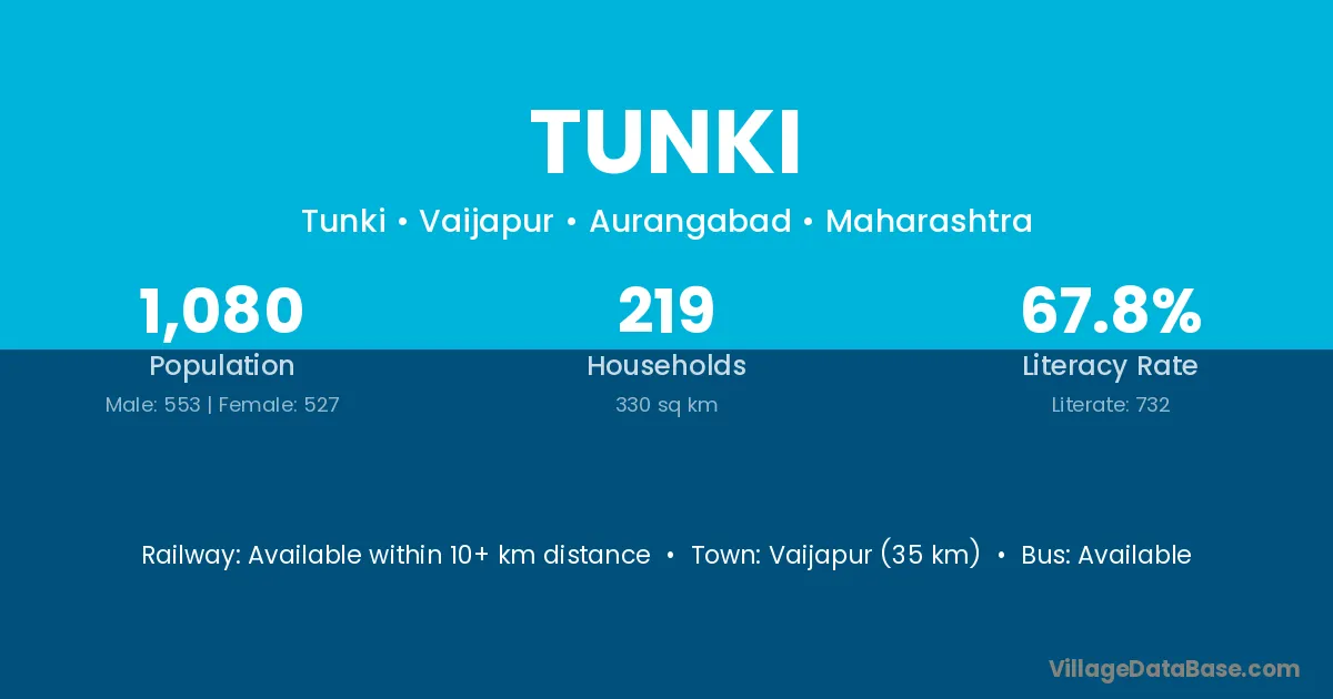Vaijapur (35 km) is the nearest town to Tunki village for major economic activities and is located approximately 35 km away.