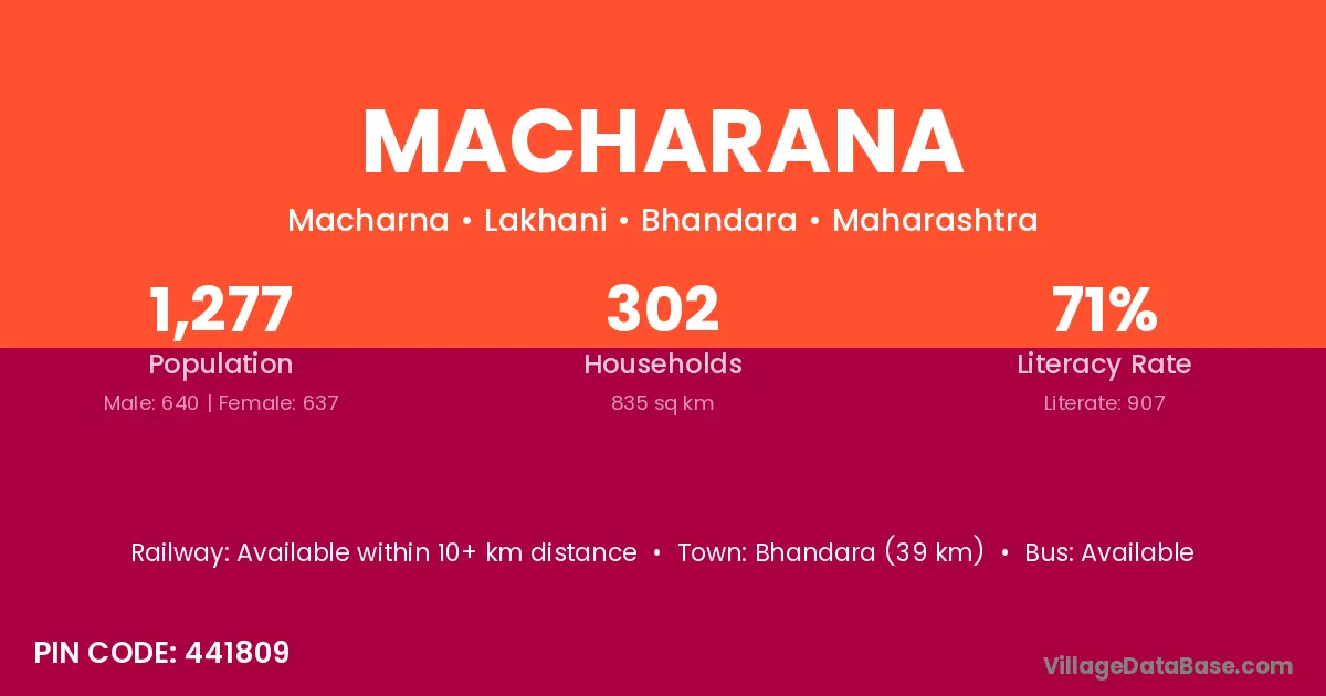 Bhandara (39 km) is the nearest town to Macharana village for major economic activities and is located approximately 39 km away.
