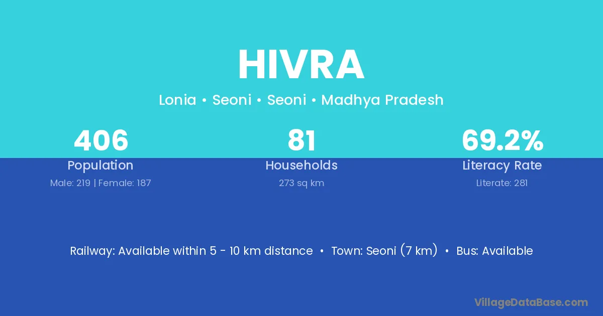 Tumsar (30 km) is the nearest town to Hivra village for major economic activities and is located approximately 30 km away.