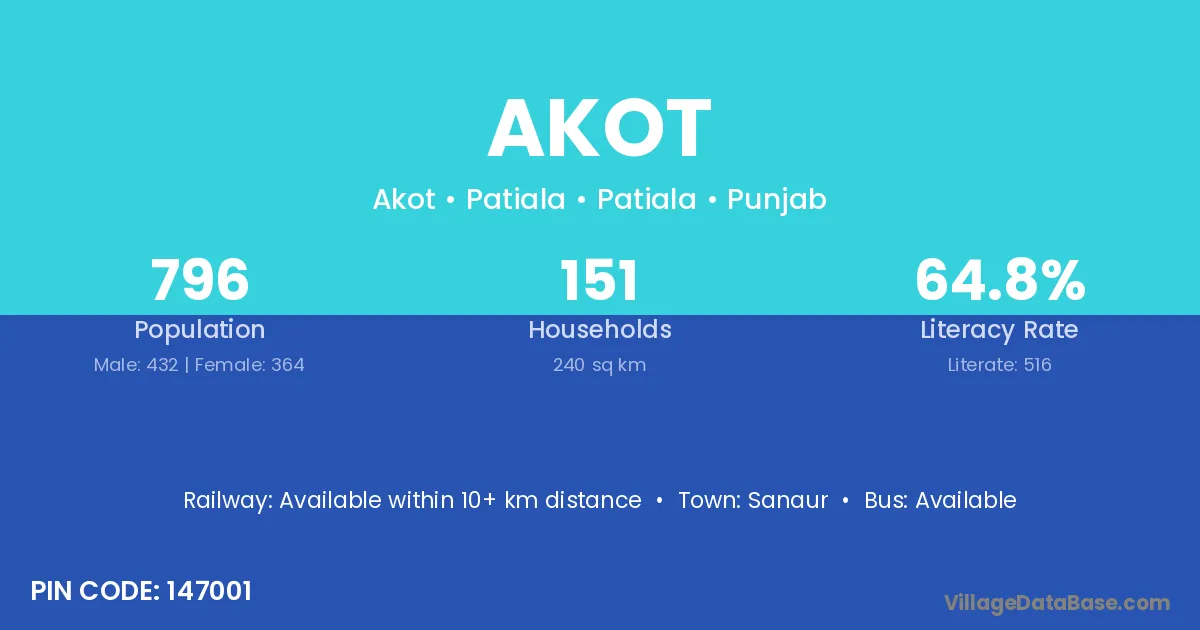 Akot village has a total population of 3,014 people, of which 1,524 are males and 1,490 are females.