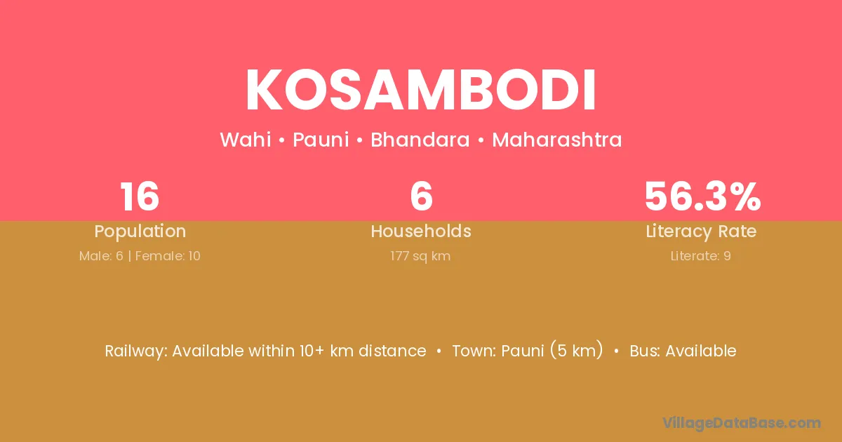 Kosambodi village has a total population of 16 people, of which 6 are males and 10 are females.