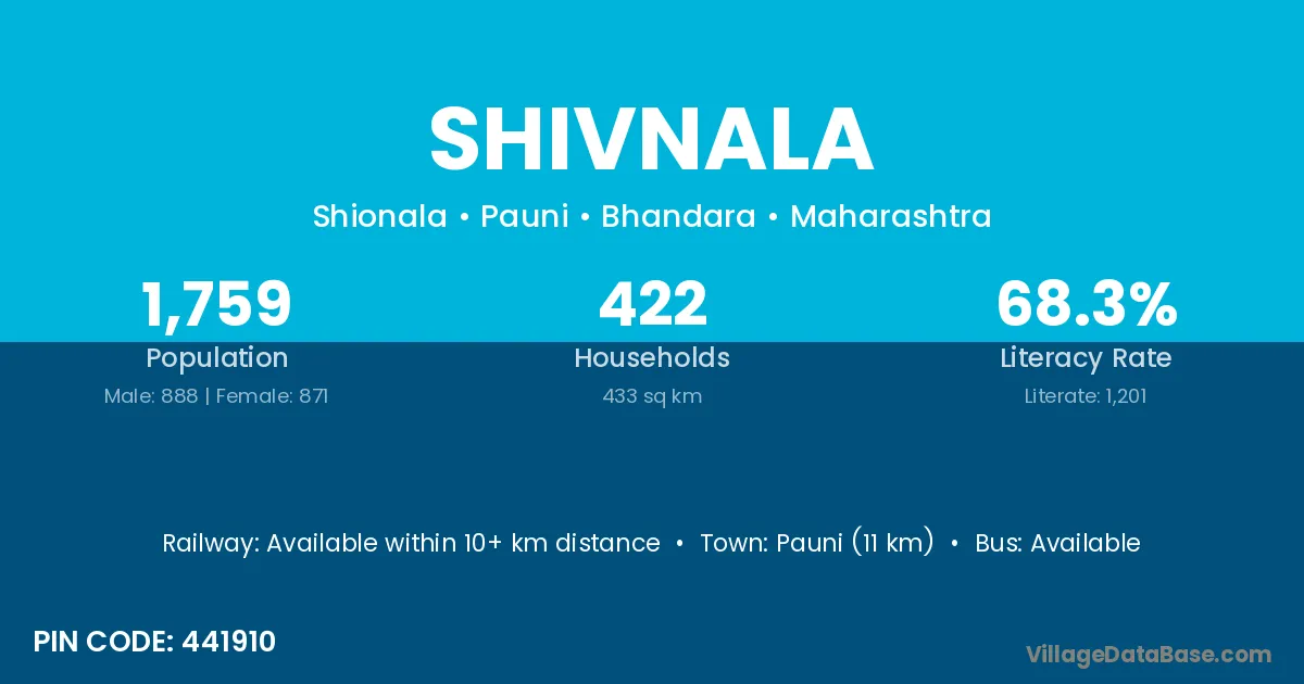 Pauni (11 km) is the nearest town to Shivnala village for major economic activities and is located approximately 11 km away.