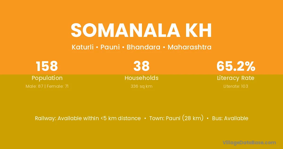 Pauni (28 km) is the nearest town to Somanala Kh village for major economic activities and is located approximately 28 km away.