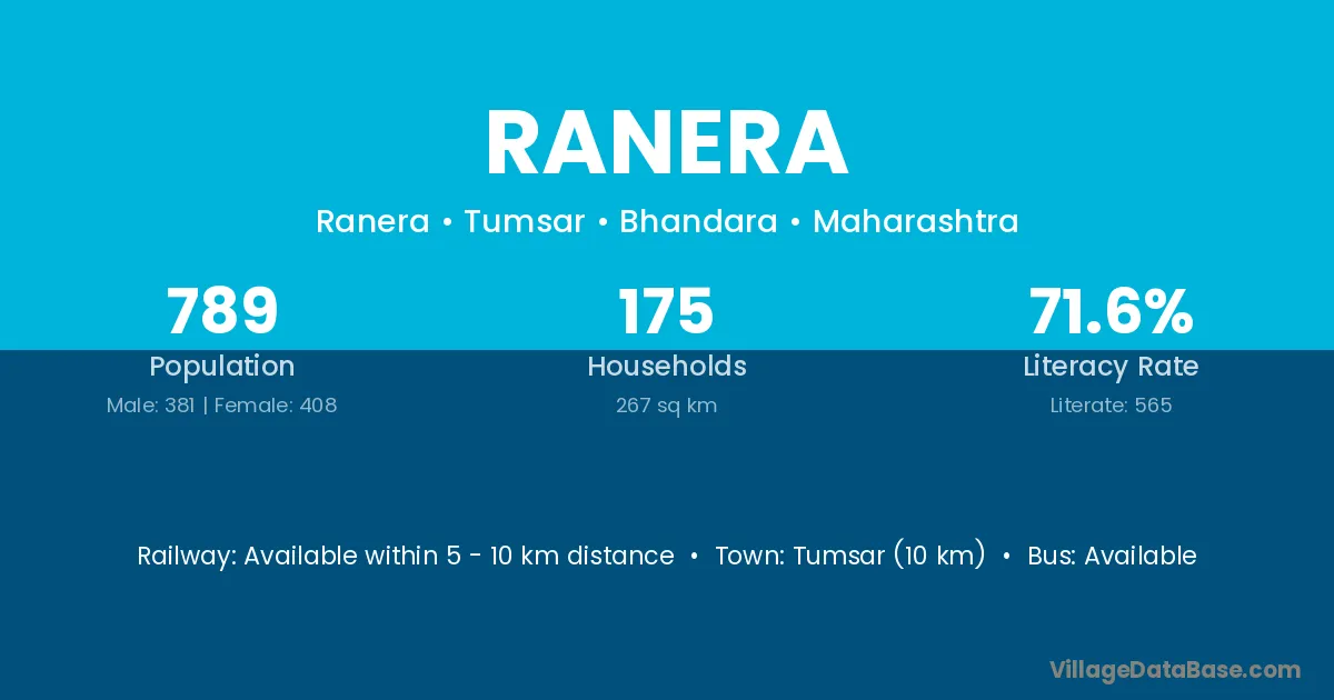 Tumsar (10 km) is the nearest town to Ranera village for major economic activities and is located approximately 10 km away.