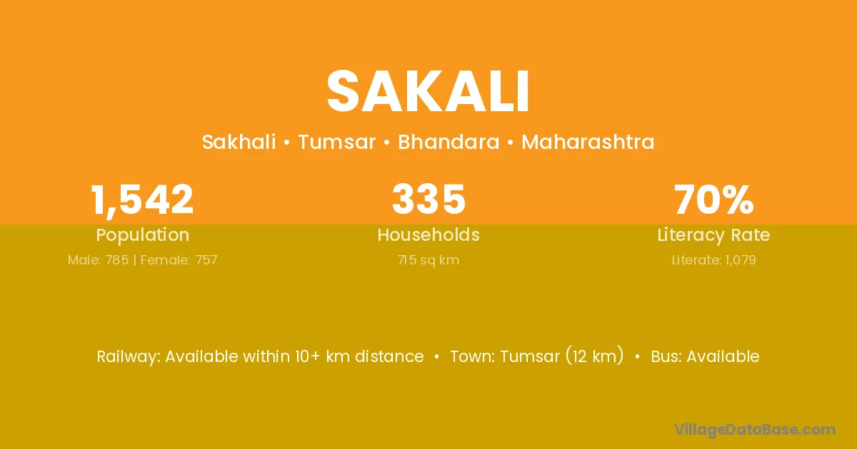 Tumsar (12 km) is the nearest town to Sakali village for major economic activities and is located approximately 12 km away.
