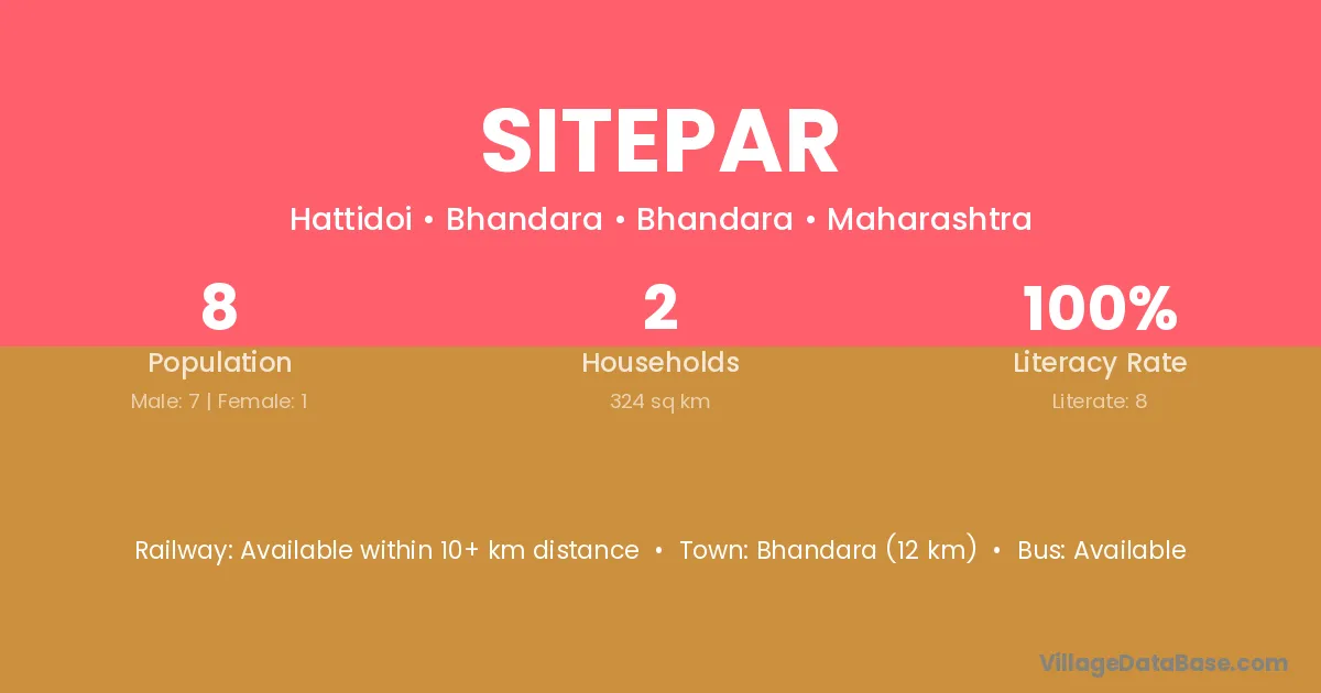 Tumsar (7 km) is the nearest town to Sitepar village for major economic activities and is located approximately 7 km away.