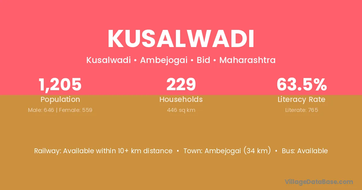 Kusalwadi village has a total population of 1,205 people, of which 646 are males and 559 are females.