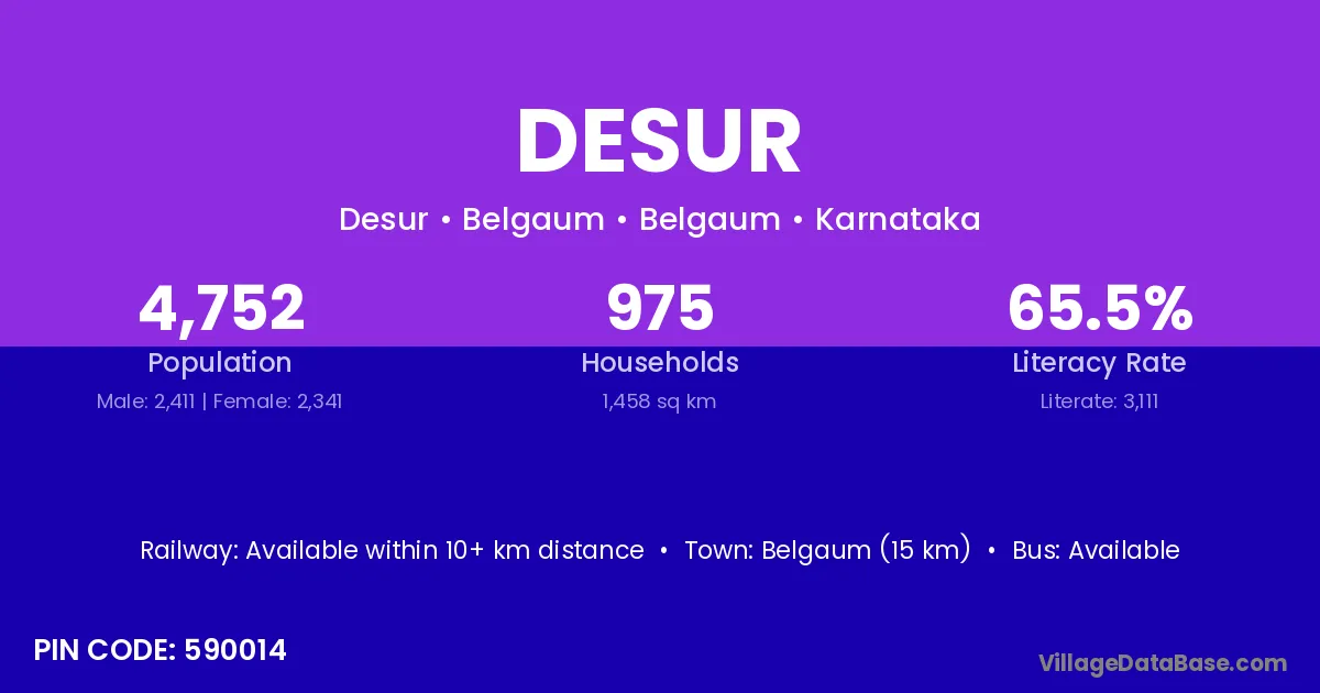 Pathardi (68 km) is the nearest town to Desur village for major economic activities and is located approximately 68 km away.