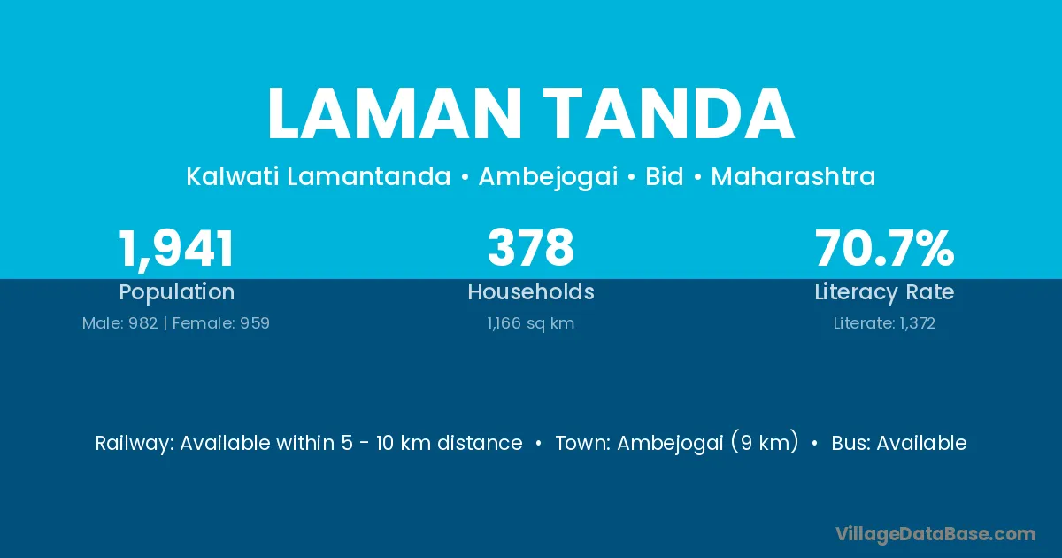 Ahmadnagar (28 km) is the nearest town to Laman Tanda village for major economic activities and is located approximately 28 km away.