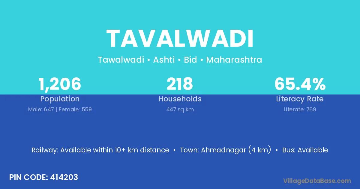 Ahmadnagar (4 km) is the nearest town to Tavalwadi village for major economic activities and is located approximately 4 km away.