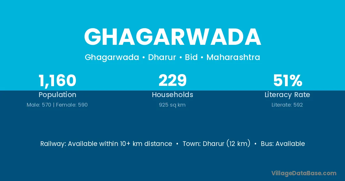 Dharur (12 km) is the nearest town to Ghagarwada village for major economic activities and is located approximately 12 km away.