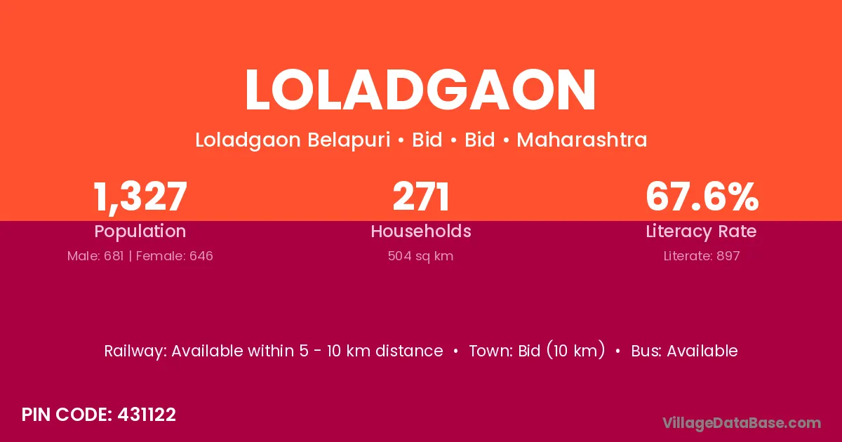 Bid (20 km) is the nearest town to Loladgaon village for major economic activities and is located approximately 20 km away.