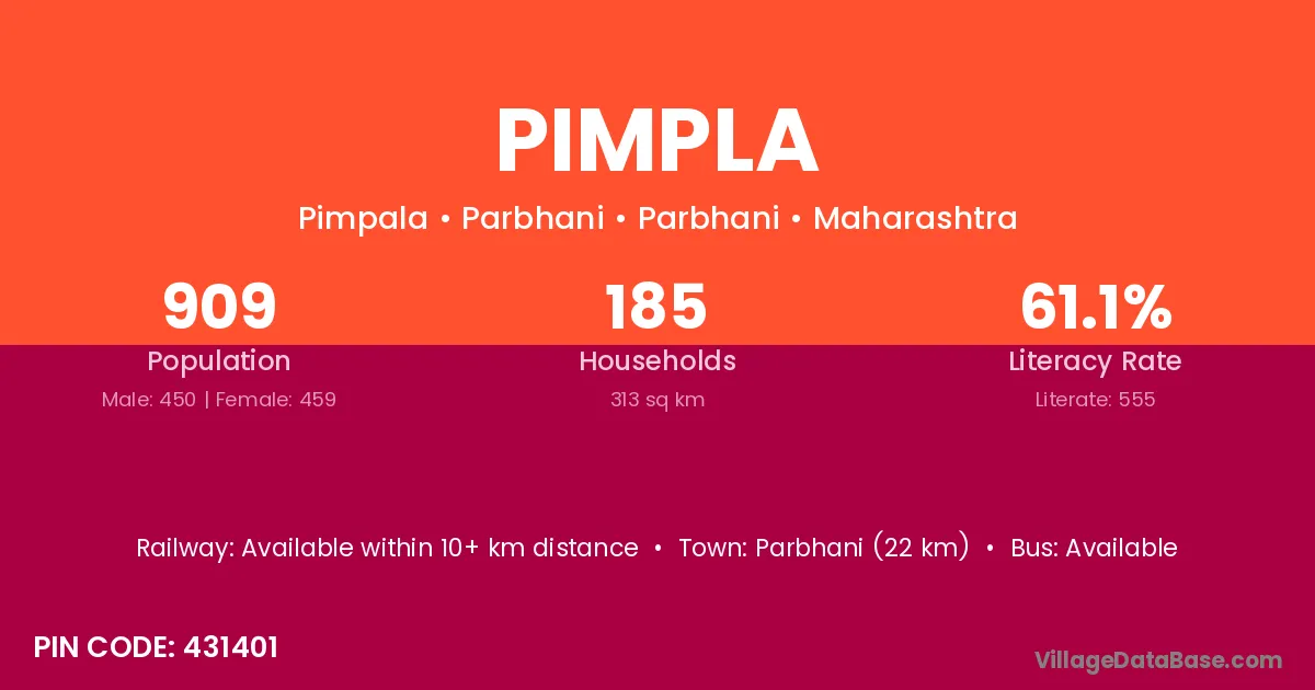 Georai (20 km) is the nearest town to Pimpla village for major economic activities and is located approximately 20 km away.