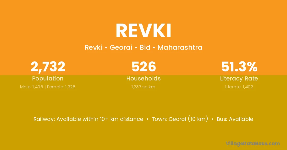 Georai (10 km) is the nearest town to Revki village for major economic activities and is located approximately 10 km away.