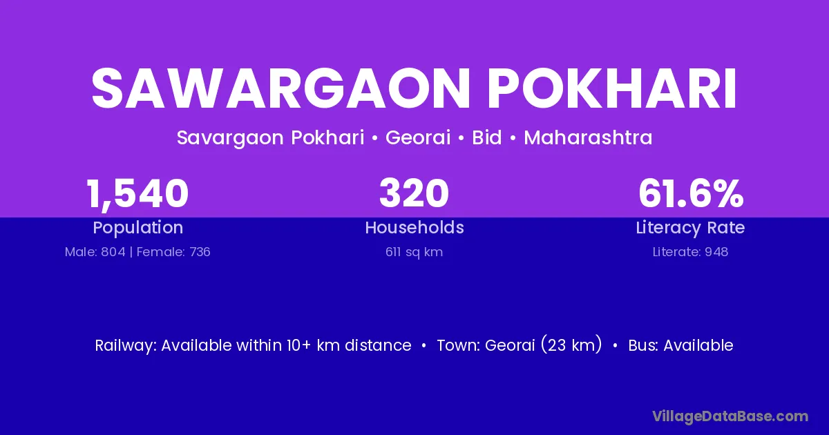 Georai (23 km) is the nearest town to Sawargaon Pokhari village for major economic activities and is located approximately 23 km away.