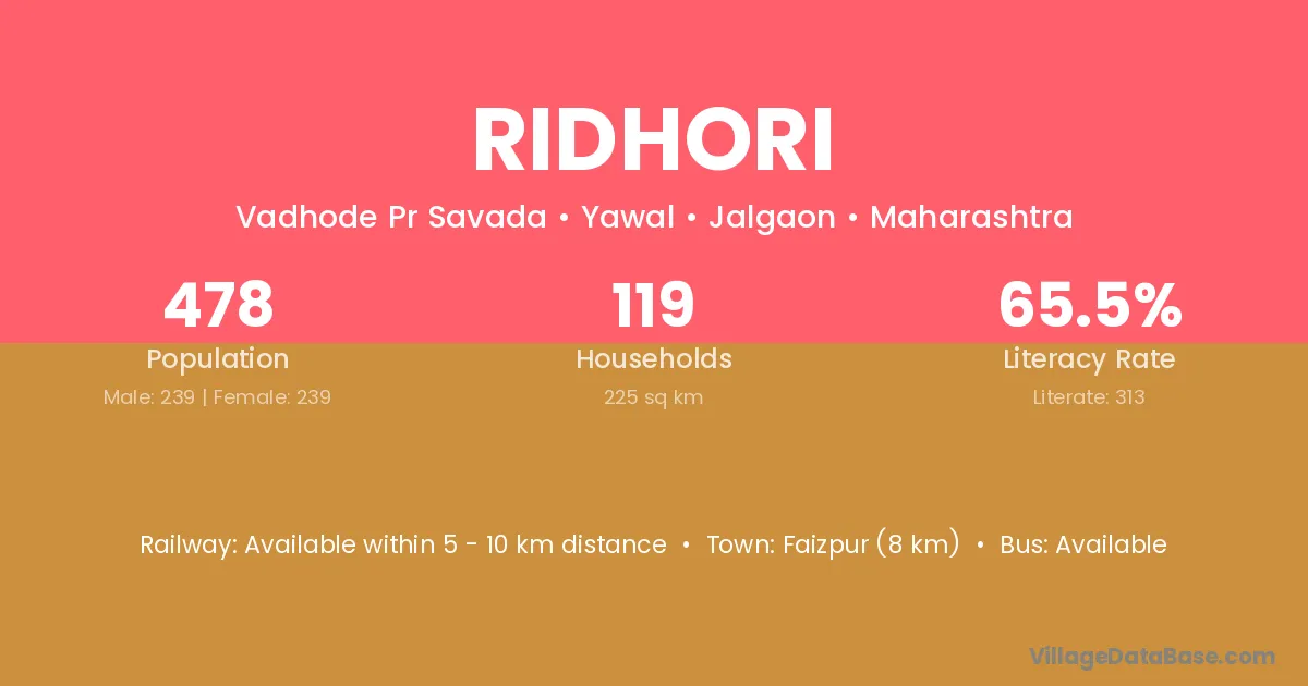 Manjlegaon (30 km) is the nearest town to Ridhori village for major economic activities and is located approximately 30 km away.