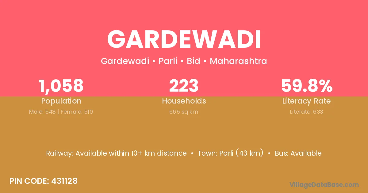 Gardewadi village has a total population of 1,058 people, of which 548 are males and 510 are females.
