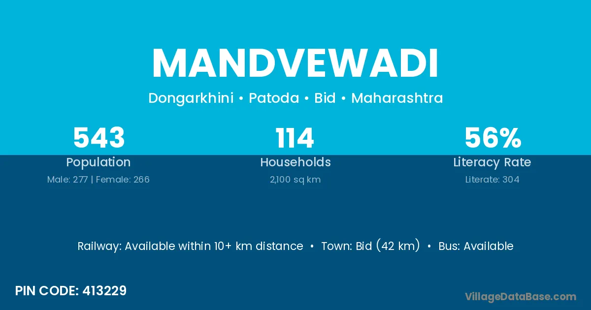 Bid (42 km) is the nearest town to Mandvewadi village for major economic activities and is located approximately 42 km away.