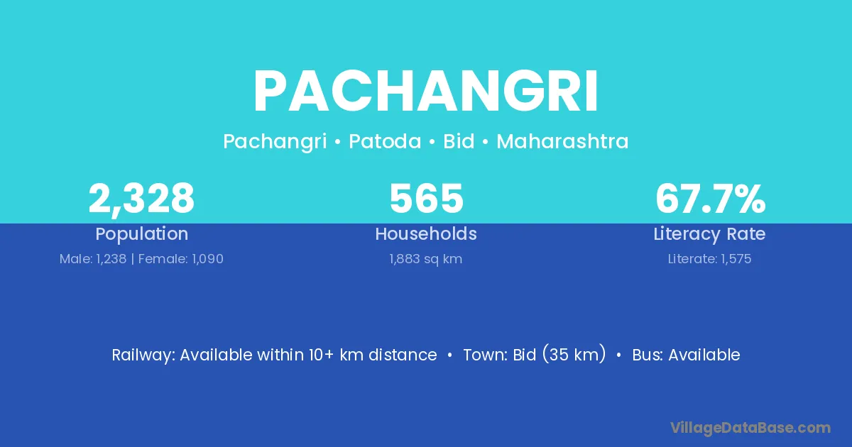 Bid (35 km) is the nearest town to Pachangri village for major economic activities and is located approximately 35 km away.