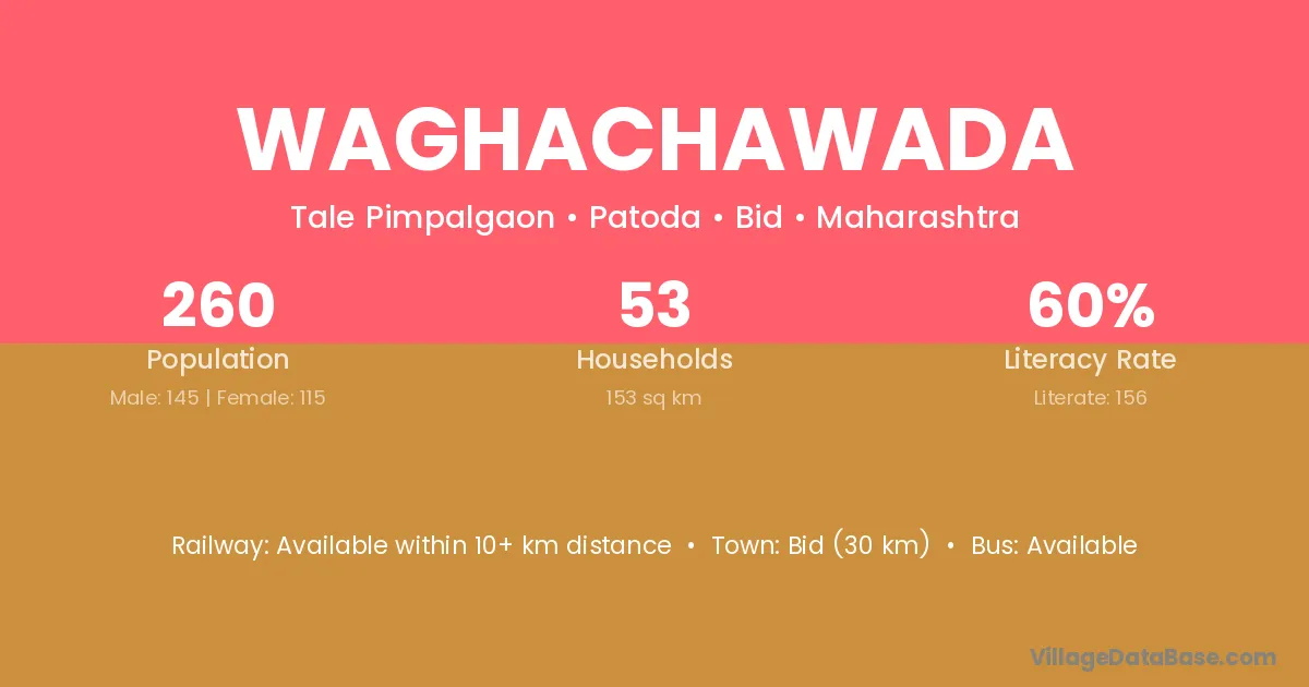 Waghachawada village has a total population of 260 people, of which 145 are males and 115 are females.
