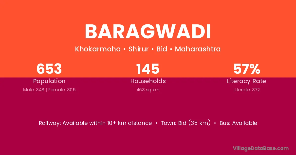 Bid (35 km) is the nearest town to Baragwadi village for major economic activities and is located approximately 35 km away.