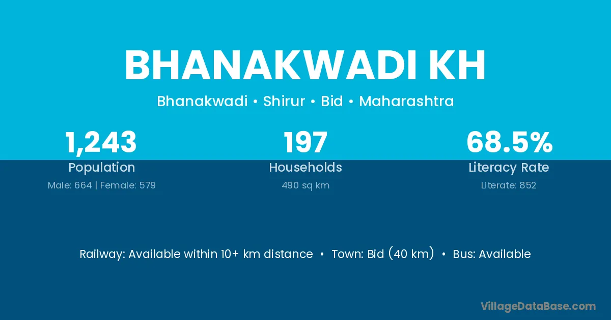 Bid (40 km) is the nearest town to Bhanakwadi Kh village for major economic activities and is located approximately 40 km away.