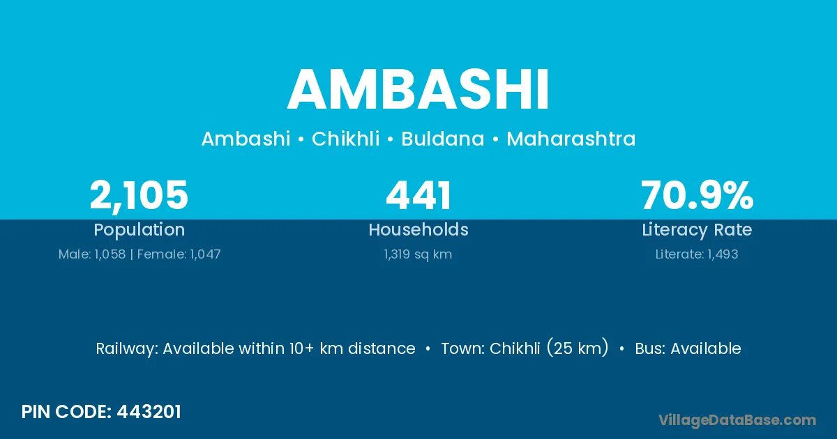 According to Census 2011 information, the village code of Ambashi village is 443201.