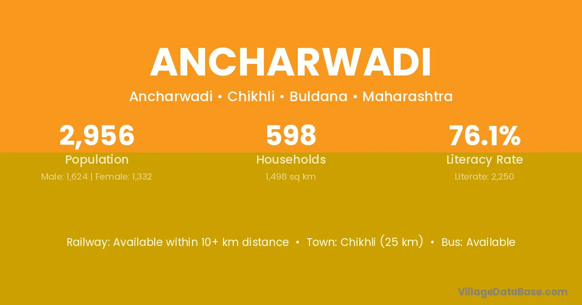 Ancharwadi village has a total population of 2,956 people, of which 1,624 are males and 1,332 are females.