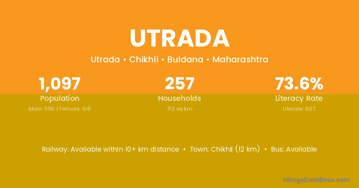 Utrada village has a total population of 1,097 people, of which 556 are males and 541 are females.