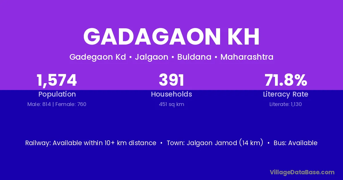 Jalgaon Jamod (14 km) is the nearest town to Gadagaon Kh village for major economic activities and is located approximately 14 km away.