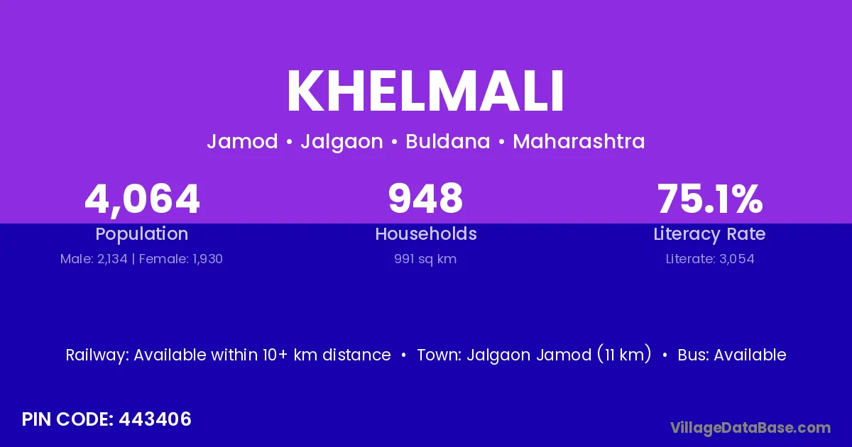 Jalgaon Jamod (11 km) is the nearest town to Khelmali village for major economic activities and is located approximately 11 km away.