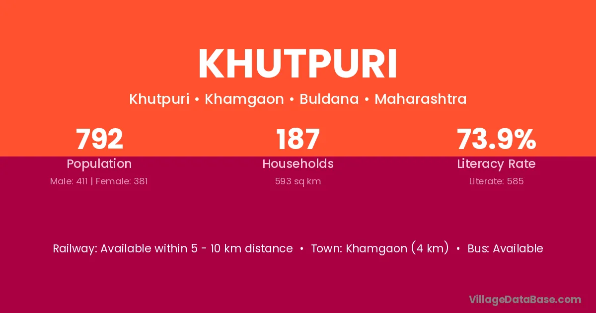 Khamgaon (4 km) is the nearest town to Khutpuri village for major economic activities and is located approximately 4 km away.