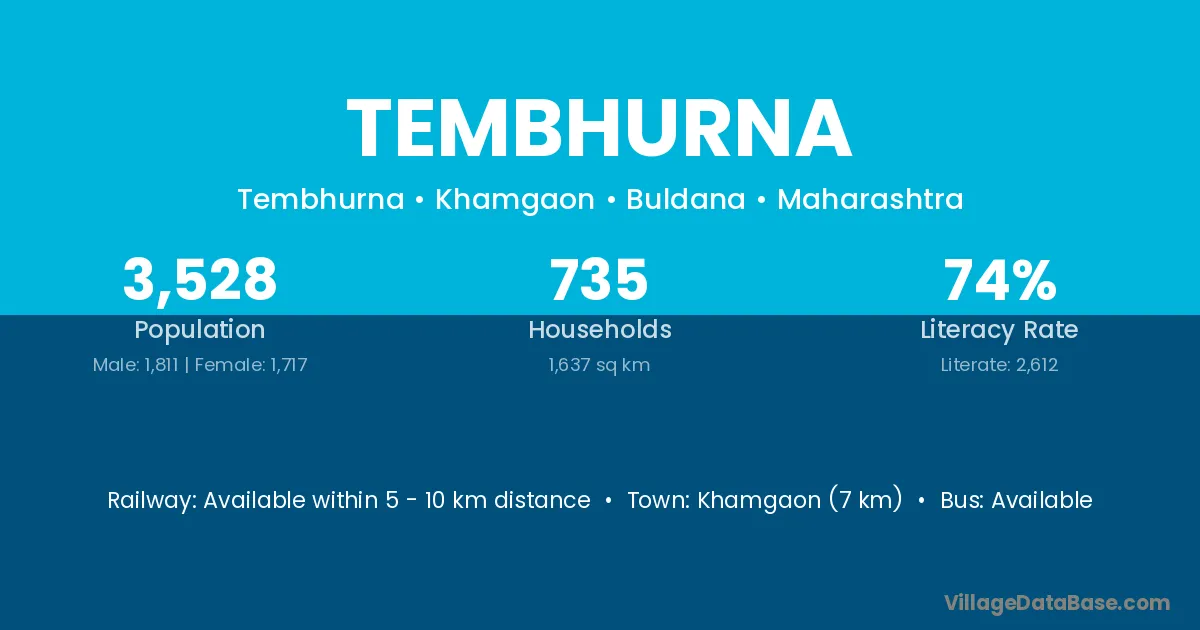 Khamgaon (7 km) is the nearest town to Tembhurna village for major economic activities and is located approximately 7 km away.